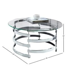 Steve Silver Company Tayside Cocktail Table, 35″ W X 35″ D X 18″ H, Clear/Chrome