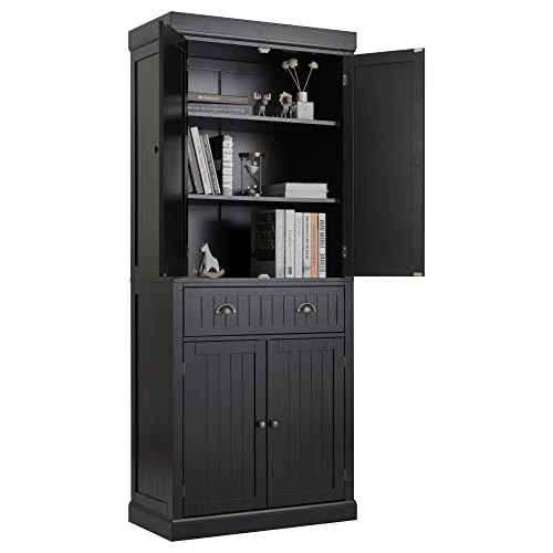 - 【Ample Storage Space】Well, if you are looking for a storage pantry cabinet with sufficient storage space, ours would be the optimal one for you to give you ample storage space for the kitchen essentials and also make them at your fingertips. The large central drawer with smooth sliding system is a perfect additional storage solution for you.