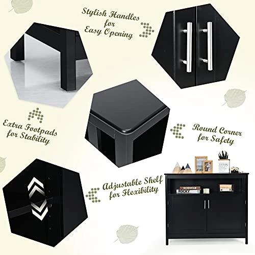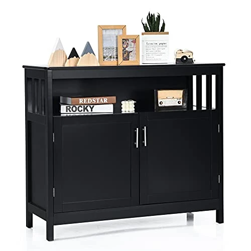 - 【Flexibility】The shelf inside this bar cabinet is adjusted in five positions and the distance between each position is about 1.3 inches or you could leave it aside if you don’t want to use it. Such a flexible buffet table won’t make your disappointed.