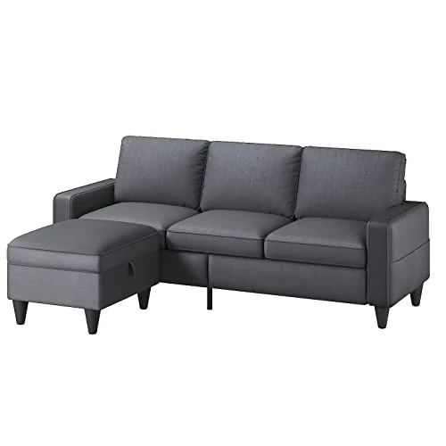 - ☑️【Bonus Storage Space】On a reversible sectional sofa, lifting the cushion on the ottoman opens up a storage space. Whether it’s a TV remote control, magazines and books, or mobile phones and tablets, they can be placed in the storage space, which is practical and convenient. The side pockets on the armrest allow you to easily reach and grab whatever you need.