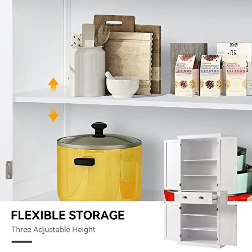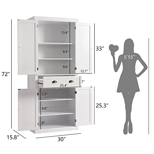 - 【Sturdys & Safty】Made of high-quality MDF, the overall structure isn’t easy to shake, safety is our first priority for you and your family, which is why there is an anti-tipping design on the back of this kitchen storage pantry that you can fix to the wall to ensure it will not fall over.