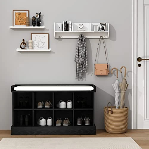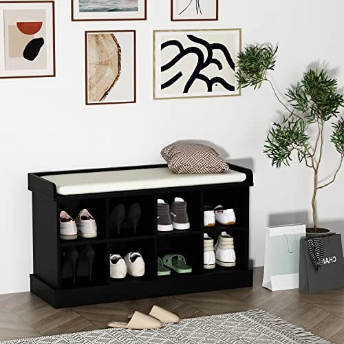 - 🏠【Comfortable Seating】The soft foam cushions covered in PU leather make for a comfortable seat while putting on or taking off your shoes. The removable cushion adds versatility to this shoe cabinet.