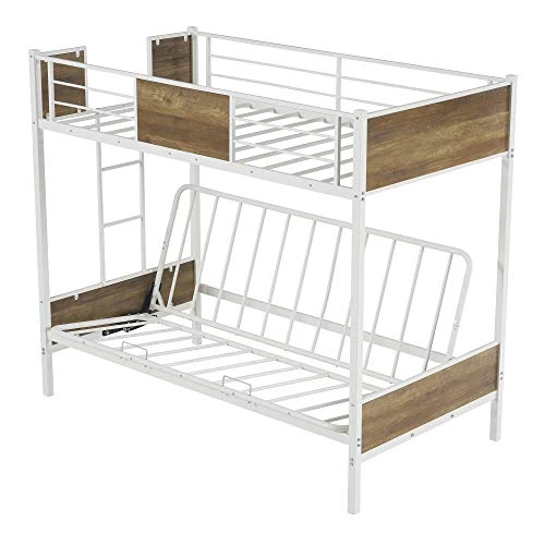 - Twin-Over-Futon Bunk Bed: The lower bed can be easily converted from a full-size bed to a sofa by folding the frame. Just one versatile bunk bed can meet your needs of having a twin bed, a full bed and a folding sofa at the same time.