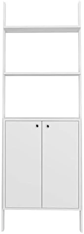 - Modern Wall-Mounted Ladder Design with a Spacious Two-Door Cabinet and Two Floating Shelves that Looks Elegant and Saves Space. Installation Hardware Included.