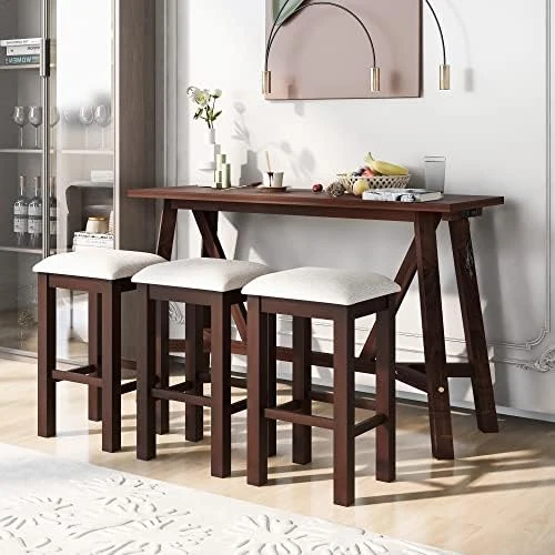 - ღღSpace-saving Solution: Compact footprint perfectly fills blank spaces in entryways, living rooms, dining rooms, pub and more. The compact nature of this set is best suited for smaller spaces, easily tuck away the stools under the table to conserve space when not in use.