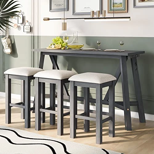 - ღღBar Table with USB Port: The side of the table is equipped with USB port and power strip, which is one of the characteristics of this table. In addition, there is a bracket at the bottom for you to place your feet, which not only ensures the comfort when using, but also increases the aesthetics.