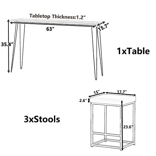 - ღღDimensions: Table– 63”Lx15.7”Wx35.4”H; Stool– 17.7”Lx15”Wx23.6”H. Table weight capacity: 176lbs; Stool weight capacity: 264lbs. Easy-to-follow instructions, all of hardware and parts are included in one package. If possible, an electric drill is recommended but not included in the box. Please let us know if you have any question, we will be very happy to assist you.
