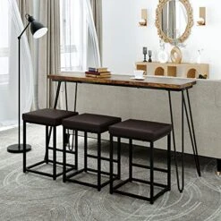 - ღღMultifunctional Pub Table: As a long counter height/pub table set, it is designed to have pretty time when having a lunch at noon or getting a drink in the afternoon or in the sunset. Besides, with its special metal hairpin legs, it can also be used as a console table in the entryway. Smooth legs will protect your floor from scratching. Decorate your home with the table and a bottle of flowers!