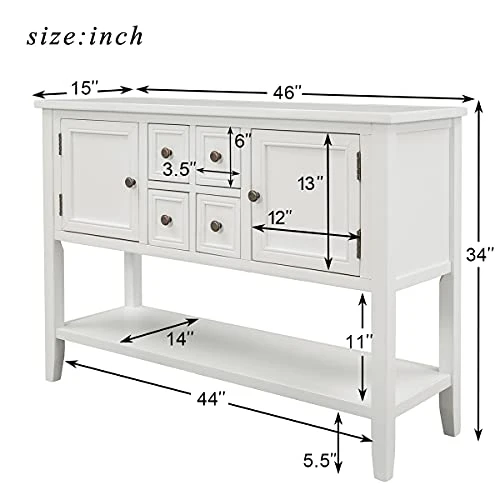 - ✔LARGE STORAGE SPACE: The Sideboard table comes complete with four storage drawers, two cabinets and bottom shelf, so can provide enough storage space. Measurements 46″ L x 15″ W x 34″ H.