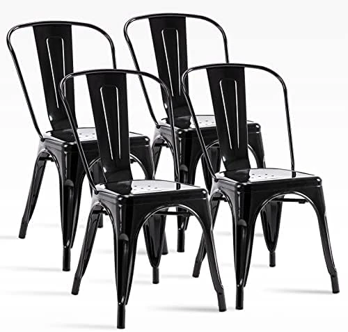 - {LIGHTWIGHT AND SPACE SAVING}:Easy to move around and you can stack the metal chair when you are not using them or push the dining chair under the table to save space.