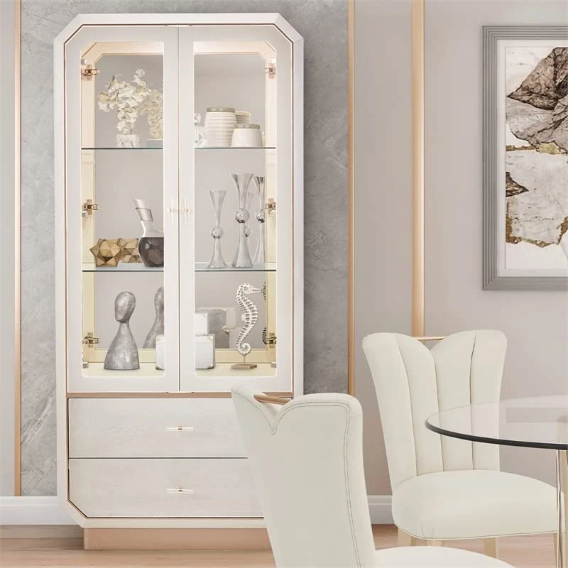 - (2) Drawers feature a White Oak veneer pattern, velvet lining, self-closing glides