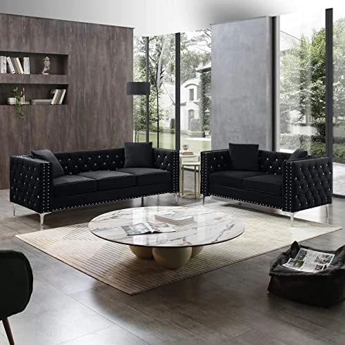 - 【Velvet Loveseat】: Crushed velvet upholstery gives you silk-like touching. High-density foam supported by sinuous spring constructs resilient seat cushions without impairing its comfort and softness. Product Dimension: 59.84’’L*32.67’’W*27.95’’H
