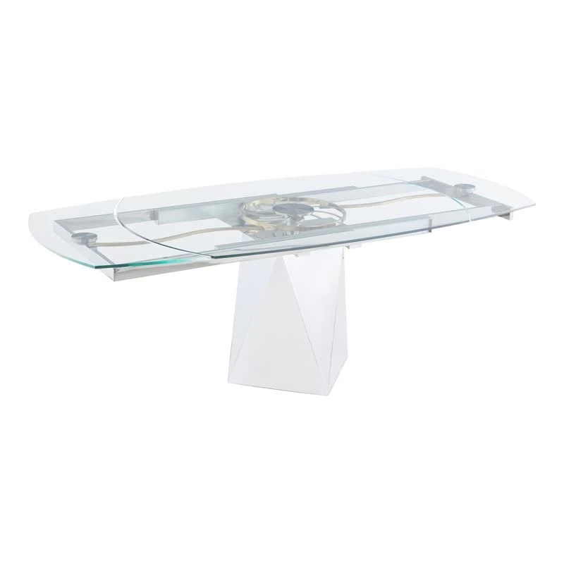 - Glass Top opens from 59. 06″ To 86. 61″ With 2 motion, pop-up Extensions on self guided tracks.