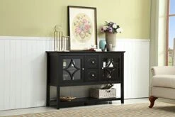 - 【Practical Piece】- The buffet table has a large capacity which features 2 glass doors for dust-proof protection, 2 multi-functional drawers and 1 tier for more storage space, which is super practical to store different items and the solid structure can ensure the excellent stability of the buffet table which can supports around 250 lbs