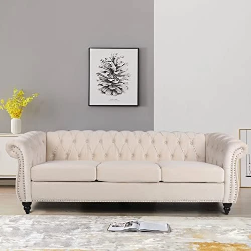 - 【Durable & Sturdy】The frame of the couch made of solid manufactured wood, which is stronger and more durable. With comfortable foam, down-filled cushions that are supported by a sinuous spring construction, and a button-tufted scrolled back and arms, the sofa set is a great addition or anyone who want to rest after a busy day.