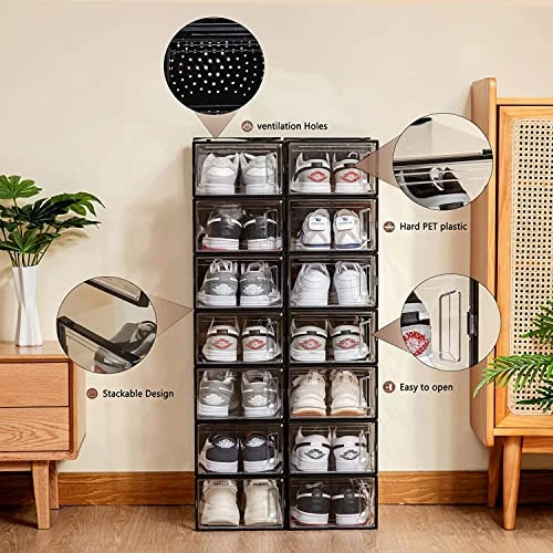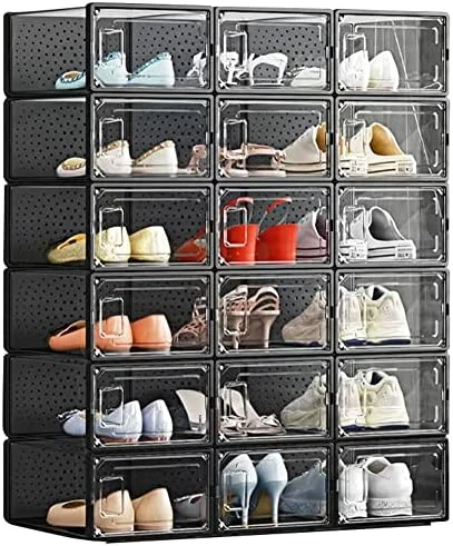 - ♚【Strong Stability】There are connection points between each shoe storage, which can connect the surrounding shoe organizers. you can combine up and down,left and right.This design can keep the entire shoe box stable and You can stack shoe boxes according to your needs.