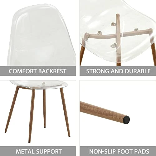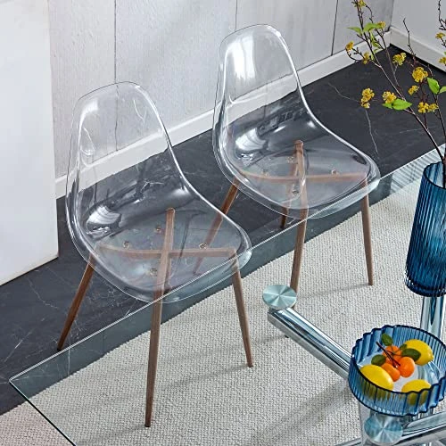 - 【Comfortable Chairs】The dining chair sillas is made of high-quality transparent plastic, elegant and comfortable. The backrest is designed according to the curvature of ergonomics, which is comfortable and adds a touch of sophistication to the transparent chair. The durable frame and legs make this chair stand out and look classy.