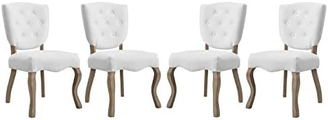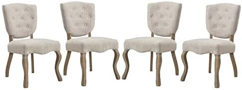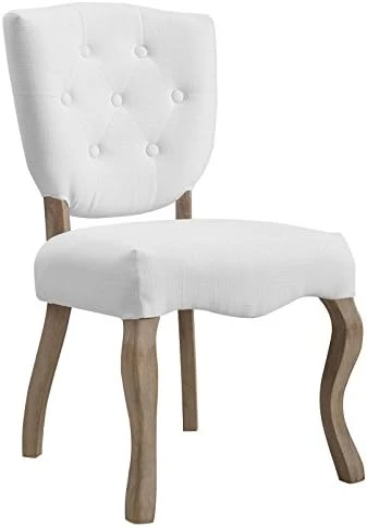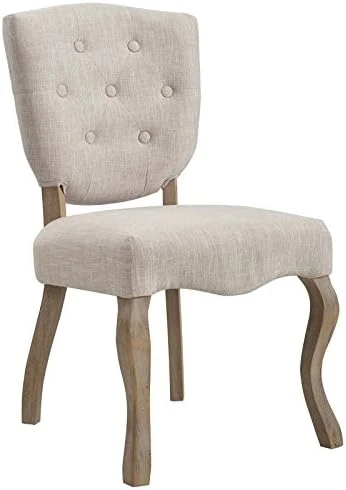 - FINE UPHOLSTERY – Upholstered in soft polyester fabric, this vintage dining chair adds distinction around a table. Elegant button tufting creates the perfect complement to the weathered wood frame