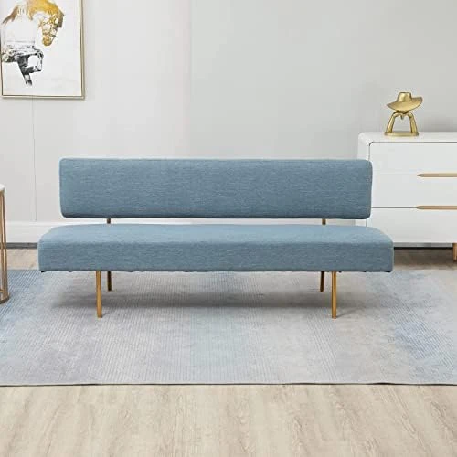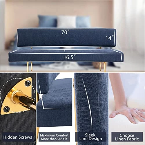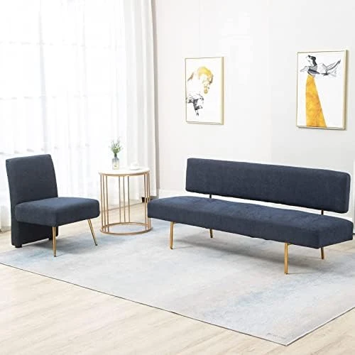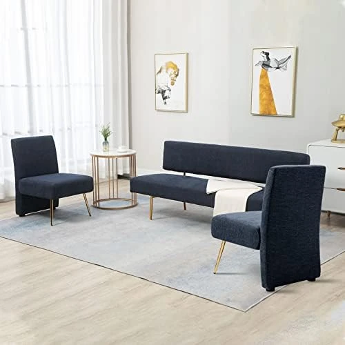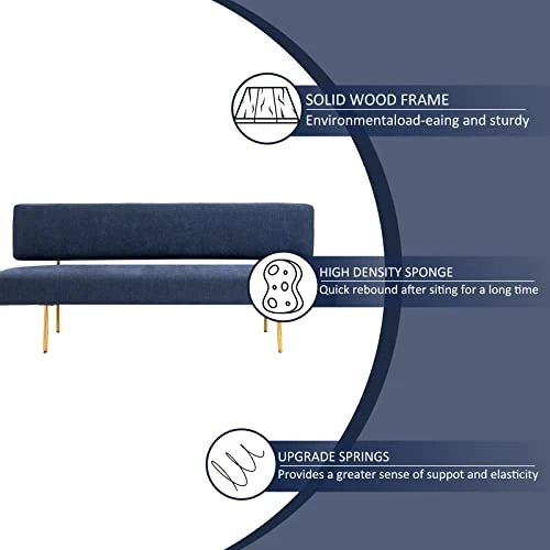 - 💒YOUNG DECORATION: Modern loveseat has two colors: dark blue and light blue, which can be perfectly matched with your living room, restaurant, bedroom, and study room, and the golden chair legs will not fade, it will not be outdated, showing your fashion taste and vitality.
