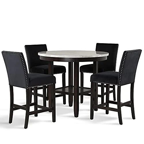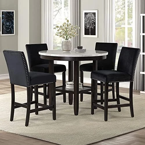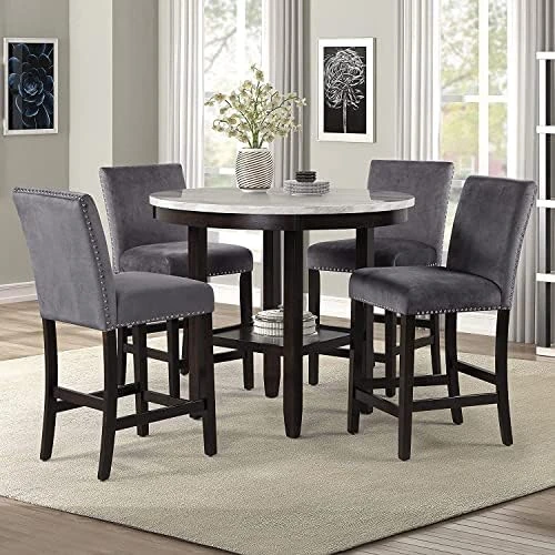 - 5 Person Dining Set: This dining set contains 1 Counter Height Dining Table and 4 Counter Dining Chairs. Can seat up to 4 people.