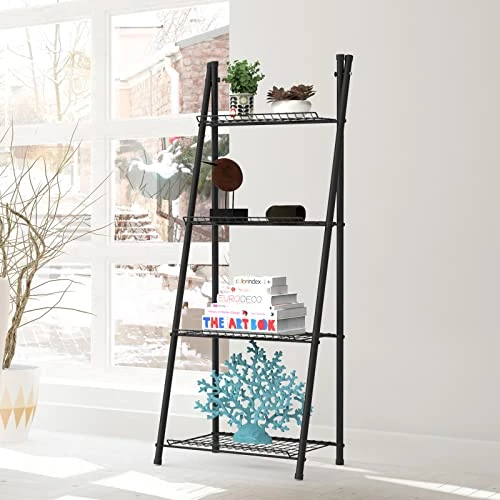 - 【4 Tier Folding Plant Stand】This open ladder shelf bookcase has a 4-layer ladder design. Each shelf can be used to store and place different items, making your room look more orderly. You can quickly find the products you need, greatly saving storage space and aesthetics, and the size of the flower display stand does not require a lot of space.