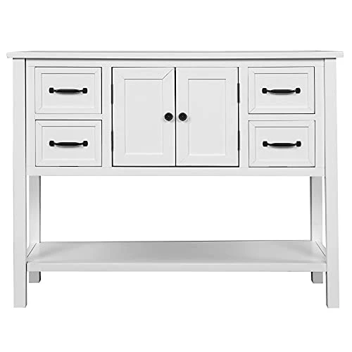 - ☛High Storage Capacity: With built in shelving ranging from the front double doors to the 4 accent side drawers, users will have plenty of space to store their belongings and avoid letting clutter accumulate on the console table.