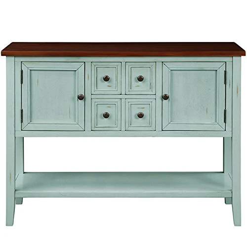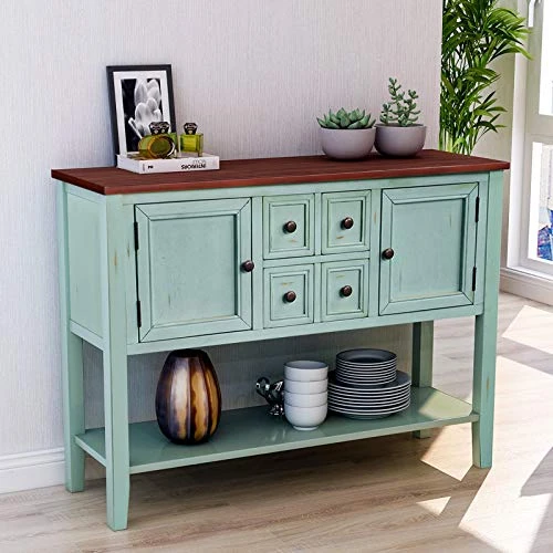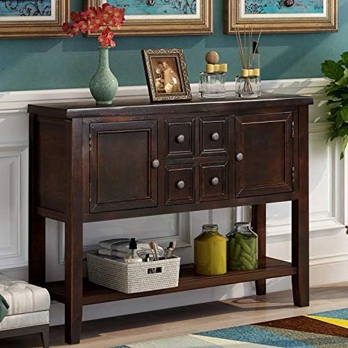 - ❤LARGE STORAGE SPACE: Measurements 46″ L x 15″ W x 34″ H. The Sideboard table comes complete with four storage drawers, two cabinets and bottom shelf, so can provide enough storage space.