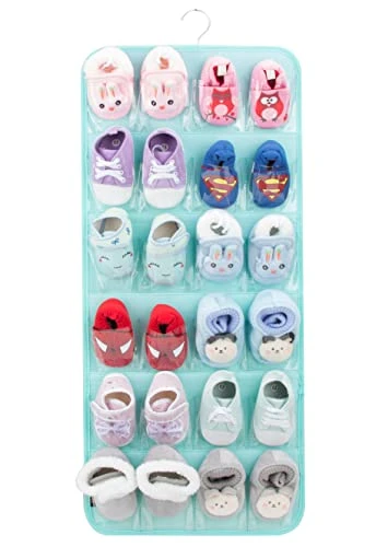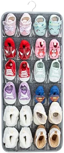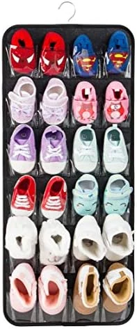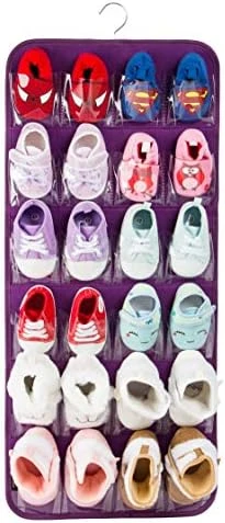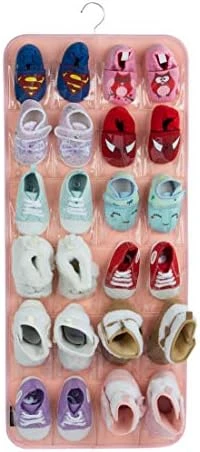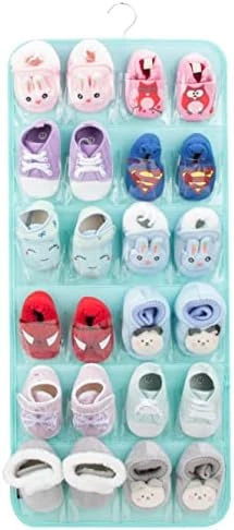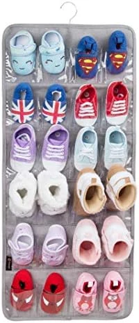 - Keep your baby’s shoes organized and paired up: easy to use, 24 pvc clear pockets design to hold 6-12 months toddlers shoes size(12 pairs of shoes), come with an anti-rust metal hanger can be hanged the door or wall, quickly grab what you need.
