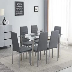 - High Quality Dining Table with Chair: The table with tempered galss tabletop and metal frame and legs,the dining chair constructed with metal frame and foam padded seat and back, which is long time use. The table and chair legs with feet pad that is friendly for your carpet