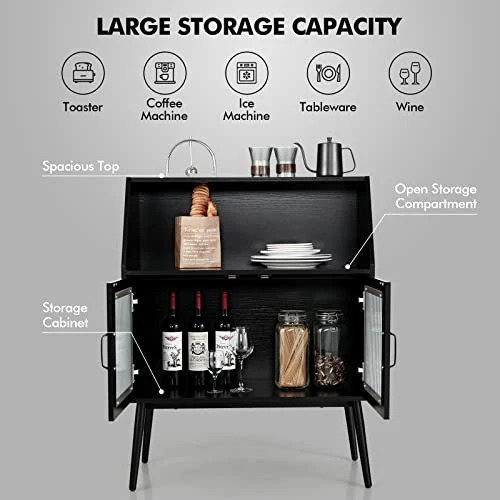 - Multipurpose Storage Cabinet: This freestanding storage cabinet is versatile and works perfectly as a buffet cabinet, a coffee station, suitable for kitchen, dining room, hallway and so on. Besides, the black buffet server has a modern look and matches harmoniously with other occasions.