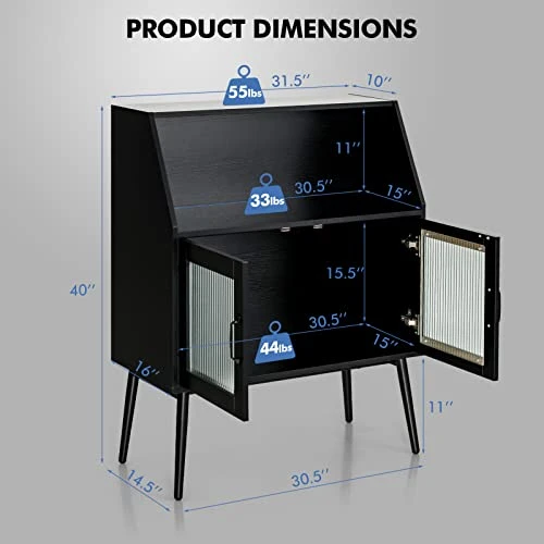 - Quality Material & Added Stability: Made of 0.6″ thick MDF and tempered glass, this sideboard holds a variety of items well and is durable. Total Weight Capacity: 132 LBS. Besides, the accent cabinet can be fixed to a wall via the anti-toppling device for higher stability and safety.
