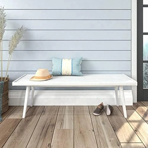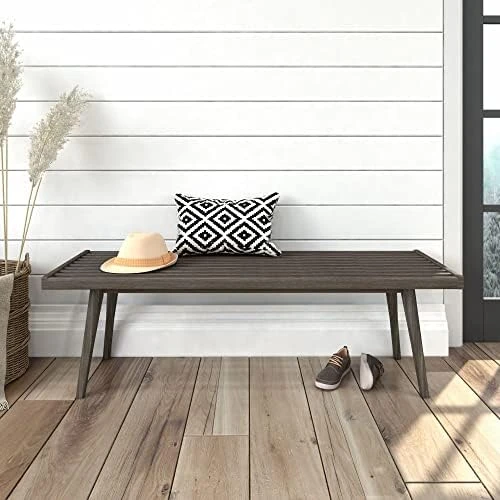 - Mid-Century Styling: A unique, slatted surface and tapered legs offer a timeless, modern style that matches your room design and other mid-century modern decor; Bench is perfect for placement in your entryway, bedroom, or covered outdoor space