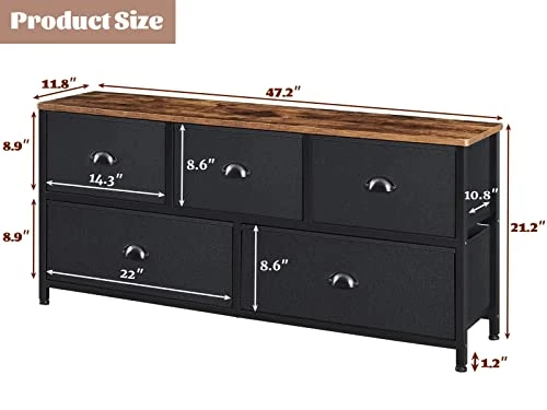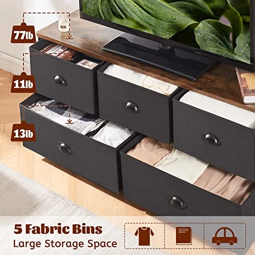- [Not Only A Larger Dresser]: Prop your TV on this stable TV stand with drawers to indulge in your favourite movies or your games, or give your kids opportunities to pack their items, all you need is just this wide fabric dressers for bedroom
