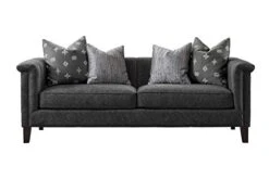 Acanva Luxury Tuxedo Velvet Channel Tufted Key Arm Living Room Sofa, 2 Piece Set, Grey