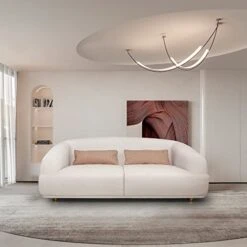 Acanva Modern Barrel Back T-Shaped Seat Cushion Design Living Room Sofa, 69″ W Loveseat, Cream