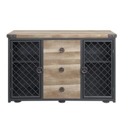 Acme Furniture Oak And Sandy Black Wood Server With 2 Doors And 3 Drawers
