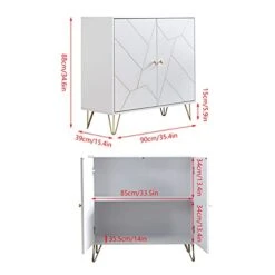 Ansley&HosHo-US White Sideboard Storage Cabinet, Modern Buffet Console Table Cupboard With 2 Doors For Kitchen Living Room Dining Room Entry Hallway Furniture, Credenza Sideboard Buffet Organizer