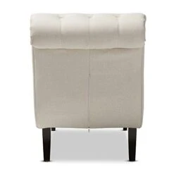 Baxton Studio Cardiff Script Print Modern Tufted Ottoman, Beige
