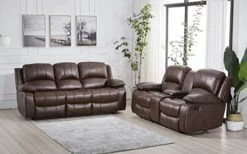 Betsy Furniture Power Reclining Bonded Leather Living Room Set (Brown, Loveseat)