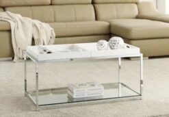 Convenience Concepts Palm Beach Coffee Table With Shelf And Removable Trays, White
