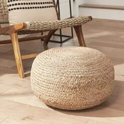 Decor Therapy Round Braided Natural Jute Woven Pouf Ottoman, 19″ X 10″