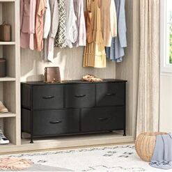Furmax Dresser For Bedroom With 5 Drawers, Wide Chest Of Drawers, Fabric Closet Dresser, Clothing Storage Organizer Unit With Fabric Bins, For Closet, TV Stand, Living Room, Hallway, Nursery (Black)