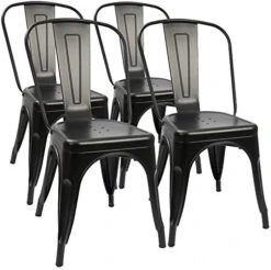 Furmax Metal Dining Chair Indoor-Outdoor Use Stackable Classic Trattoria Chair Chic Dining Bistro Cafe Side Metal Chairs Set Of 4 (Red)