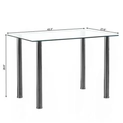 Karl Home Modern Tempered Glass Dining Table, Kitchen & Dining Room Glass Tables With 4 Heavy-Duty Metal Legs, 200lbs Capacity, 43.3″ L X 27.6″ W X 28.9″ H (Glass)