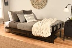 Kodiak Furniture Monterey Futon Set With Storage Drawers, With Black Base And Linen Stone Mattress