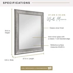 MCS 47692 16×20 Inch Wall Mirror, 21.5×25.5 Inch Overall Size, Antique Silver Finish