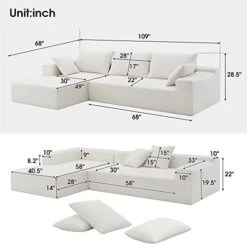 Melpomene Modular Sectional Sofa, Modern Minimalist 109″ L-Shape 2 PC Free Combination Upholstered Sleeper Sofa Couch,White