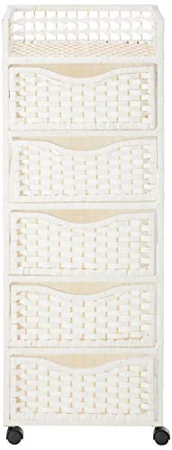Oriental Furniture 46″ Natural Fiber Chest Of Drawers On Wheels – White