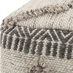 SIMPLIHOME Sweeney Square Pouf, Footstool, Upholstered In Grey, Natural Handloom Woven Wool And Cotton Pattern, For The Living Room, Bedroom And Kids Room, Boho
