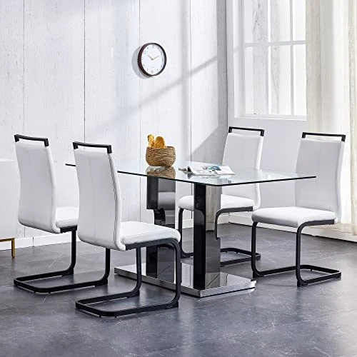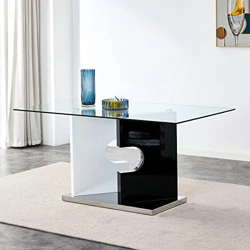 - CONTEMPORARY DESIGN: Features a sleek, contemporary design that combines a silver tone stainless pedestal base with high glossy black MDF wood frame. Distinctive silhouettes and chic embellishments lend enduring appeal. Elegant and eye-catching, the stunning glass dining table from Pvillez furniture is the perfect addition to any space.